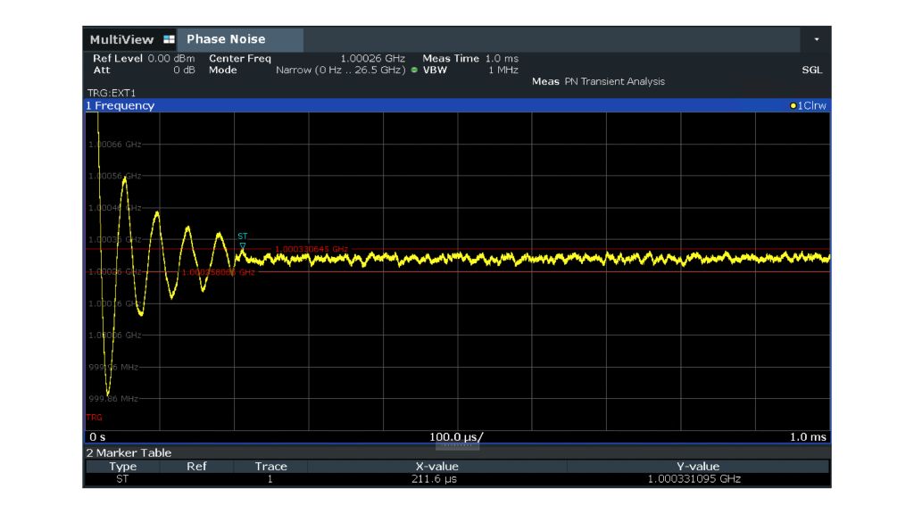 R&S FSWP предлагает полосу пропускания до 8 ГГц для анализа частотных или фазовых характеристик в зависимости от времени. Помимо этого широкополосного анализа, R&S FSPN также выполняет узкополосный анализ до 40 МГц для анализа переходной характеристики схем ФАПЧ.