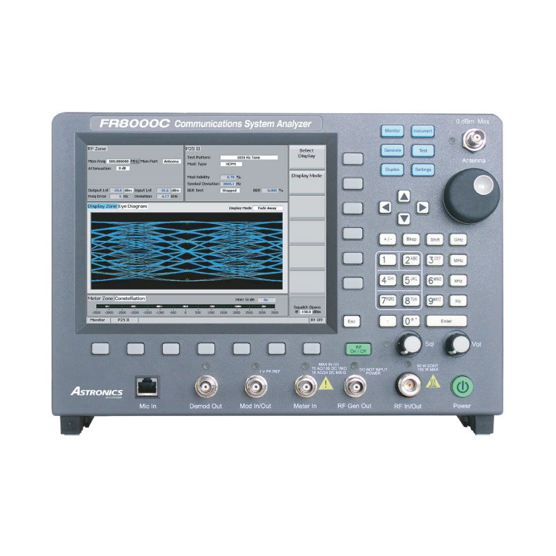 Анализатор систем связи R8000C — это третье поколение стандартного для отрасли анализатора систем сухопутной подвижной радиосвязи , впервые созданного в 2009 году. R8000 весом всего 6,4 кг является единственным тестовым комплектом, предлагающим полную функциональность настольного компьютера в портативном программно-определяемом корпусе. Обновления встроенного ПО доступны бесплатно в течение всего срока службы устройства, поэтому возможности R8000 со временем только расширяются. R8000 тестирует все основные цифровые протоколы сухопутной подвижной радиосвязи, обладает высокой расширяемостью и может похвастаться спектральной чистотой лабораторного уровня. Фактически, его радиочастотные характеристики соответствуют или превосходят характеристики приборов стоимостью на тысячи долларов дороже. Все это объясняет, почему R8000 стал предпочтительным инструментом тестирования сухопутной подвижной радиосвязи для тысяч радиотехников по всему миру.