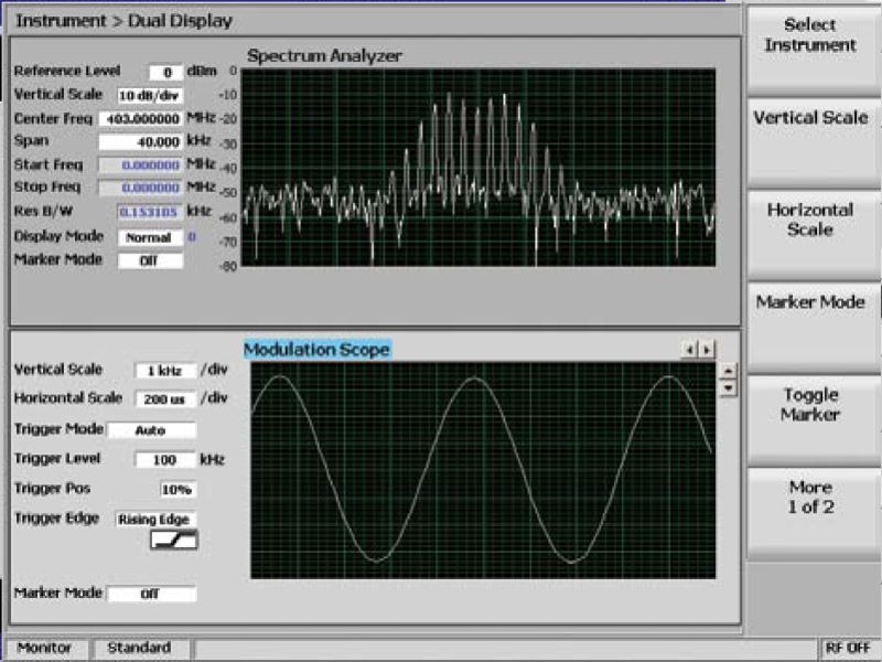 Наш уникальный двойной дисплей позволяет вам одновременно просматривать анализатор радиочастотного спектра и область модуляции, что дает вам возможность анализировать радиочастотные характеристики несущего сигнала и восстановленного аудио на одном экране. Полная функциональность каждого прибора доступна в режиме двойного отображения, и отображаются все связанные измерения. Благодаря двойному отображению вам больше не нужно переходить от анализатора спектра к области модуляции, чтобы увидеть все, что вам нужно, – все это на одном экране! Входит в комплект поставки расширенного анализатора спектра R8-ESA.