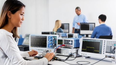 Анализатор спектра R&S FPC идеально подходит для ВЧ-исследований в учебной лаборатории. Этот экономичный прибор сочетает в себе удобство в обращении и современные технологии. Большой 10,1-дюймовый экран высокого разрешения отображает все подробности сигнала, при этом несколько студентов могут пользоваться одним анализатором. Преподаватель может ассистировать или выполнять удаленный контроль с помощью бесплатного ПО для дистанционного управления.
