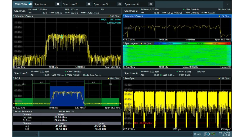 Прибор R&S FPL1000 можно использовать для спектральных измерений, прецизионных измерений мощности с помощью датчиков мощности или анализа сигналов с аналоговой и цифровой модуляцией.