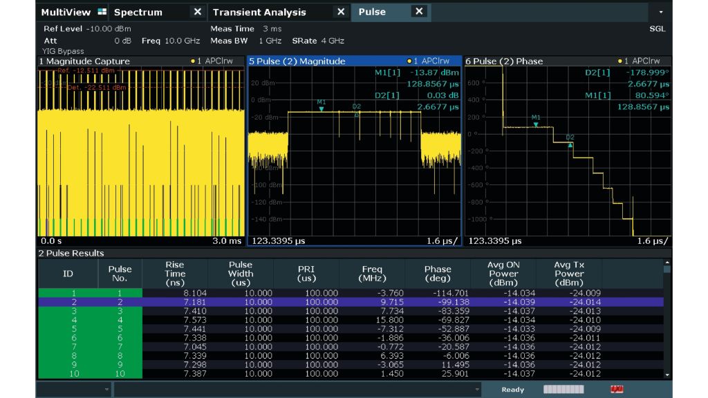 • С помощью опции измерения импульсов R&S FSW-K6 можно измерять все важные параметры импульсов нажатием одной кнопки