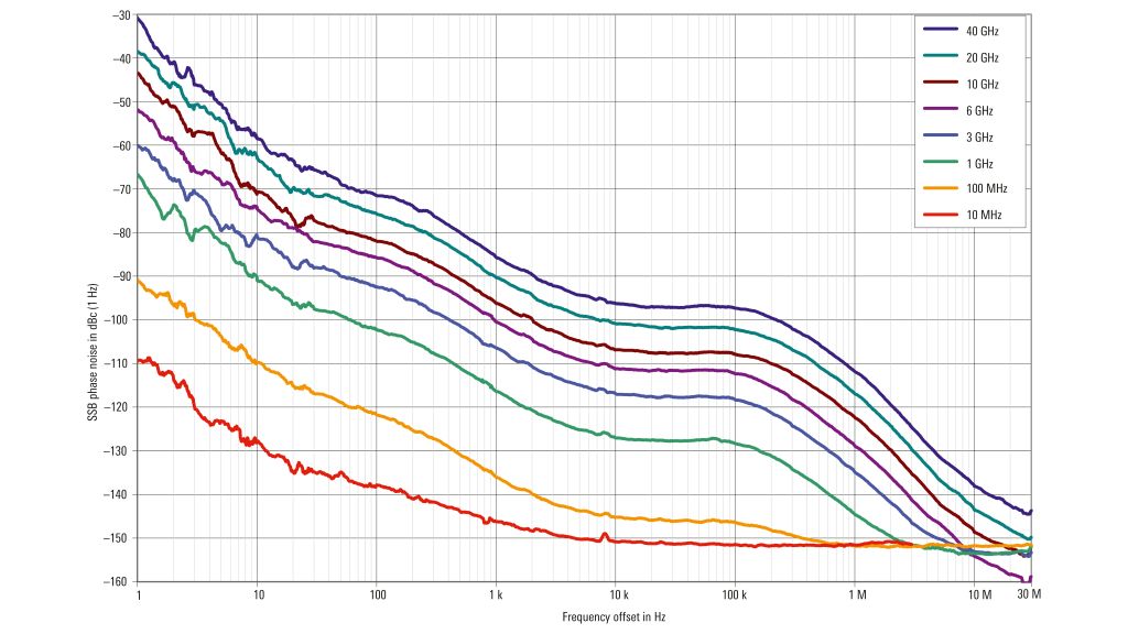 Опция высокой мощности R&S SMB-B31 для модели 20 ГГц обеспечивает указанную выходную мощность +19 дБмВт, а опция высокой мощности R&S SMB-B32 для модели 40 ГГц обеспечивает выходную мощность +16 дБмВт в широком диапазоне частот до 20 ГГц и 40 ГГц.