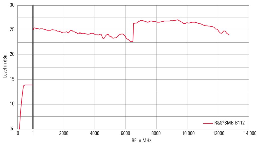 R&S SMB100A объединяет в себе отличное качество сигналов с высокой выходной мощностью > +18 дБмВт в стандартной комплектации для прибора 12,75 ГГц. Максимальная измеряемая выходная мощность — +27 дБмВт.