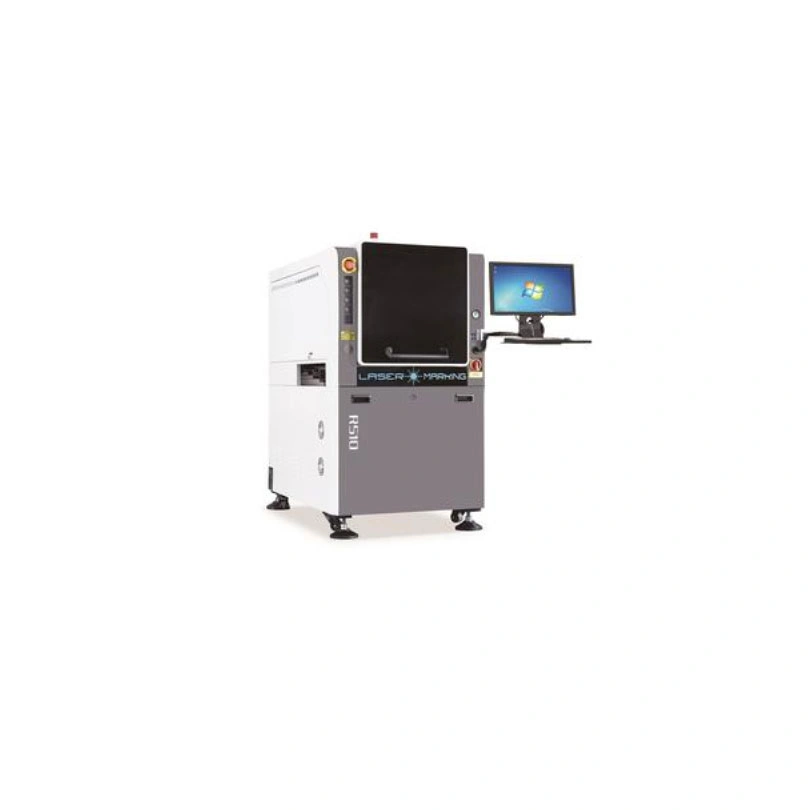 Автоматическая система лазерной печати R510 предназначена для маркировки печатных плат путем нанесения штрих-кода. Лазерный маркиратор печатных плат обеспечивает высочайшую точность маркировки (±0,02 мм). Система оснащена функцией коаксиальной визуальной коррекции — Hawk-eye, гарантирующей стандартное качество графики даже на сложных поверхностях. Маркиратор обрабатывает гибкие (FPC), жесткие и деформированные печатные платы, обеспечивая точное позиционирование и нанесение маркировки. Высокая скорость обработки достигает 7000 мм/с, что позволяет, например, нанести 55-значный QR-код размером 3×3 мм белыми чернилами всего за 1 секунду. Компактные размеры позволяют беспрепятственно интегрировать систему в производственную линию.