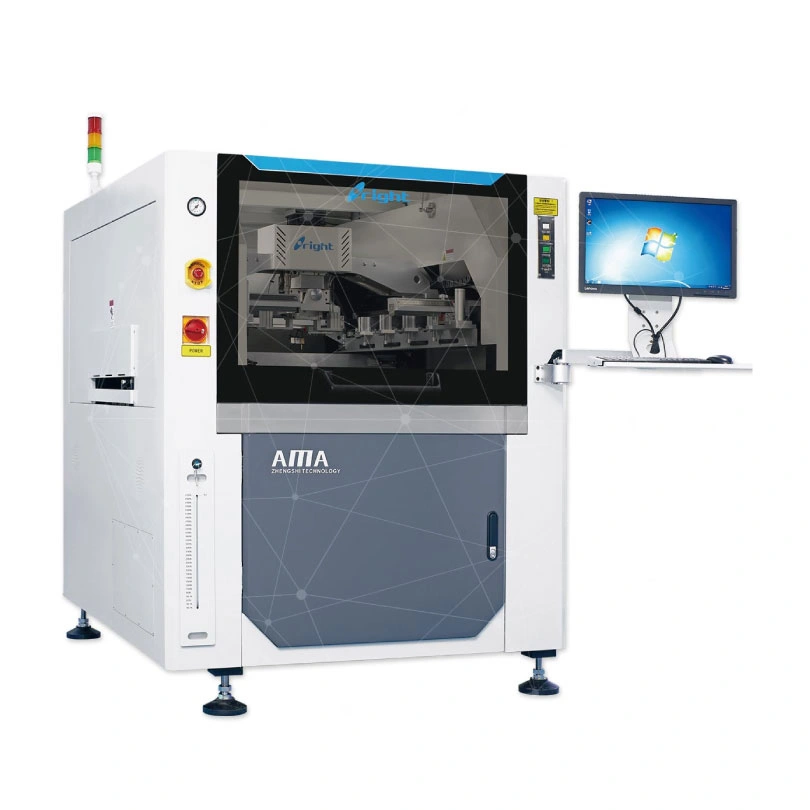 Автоматический трафаретный принтер модели AМА — самая продвинутая модель хай-энд линейки трафаретных принтеров RIGHT™ обеспечивает высокоточное нанесение паяльной пасты на печатные платы (PCB) любой сложности, включая работу с микросхемами BGA, QFN и другими SMD-компонентами. Предназначен для использования в конвейерных линиях в условиях среднесерийного производства длинных плат. Повышенная точность совмещения гарантирует высокое качество печати и повторяемость процесса. Принтеры в базовом исполнении имеют функцию 2D-инспекции паяльной пасты.