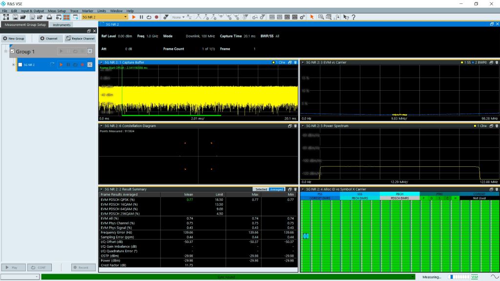 - Измерение мощности ВЧ-сигнала, значения EVM и фазы с помощью одного прибора