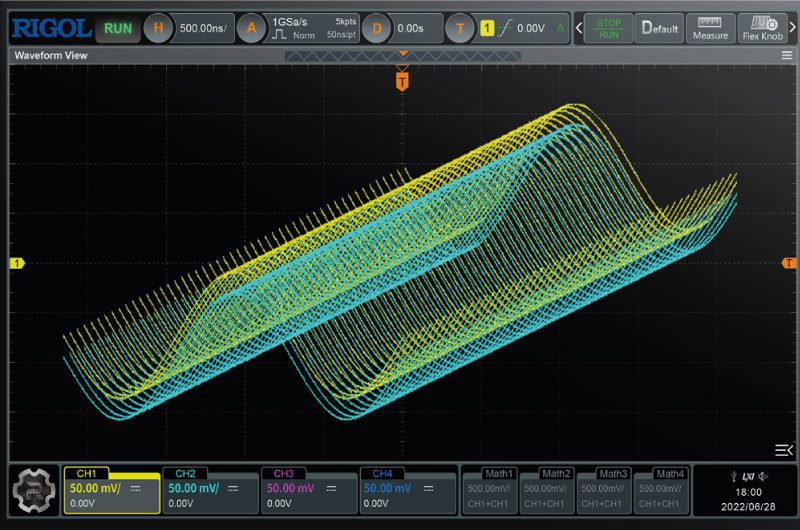 - Тестирование источников питания: осциллограф является важным инструментом для измерения параметров источника питания. 12-битное разрешение осциллографов серии HDO1000 позволяет проводить измерения пульсации легко и быстро.
