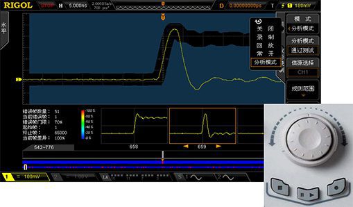 Функция записи в реальном времени, реализованная аппаратными средствами, может записывать до 65000 осциллограмм. Специальная ручка навигации для анализа данных позволяет быстро просматривать записанный контент, удобно воспроизводить, анализировать и сравнивать сигналы, а также определять местоположение неисправности.