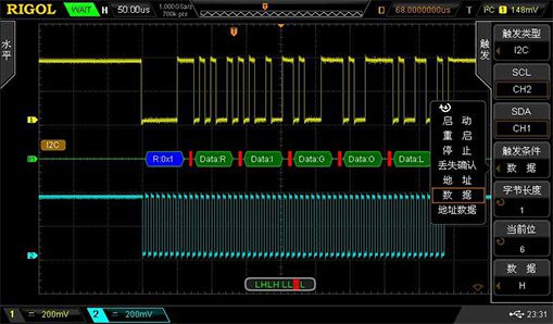 Поддержка триггера и декодирования шин I2C, SPI, RS232, can и других.