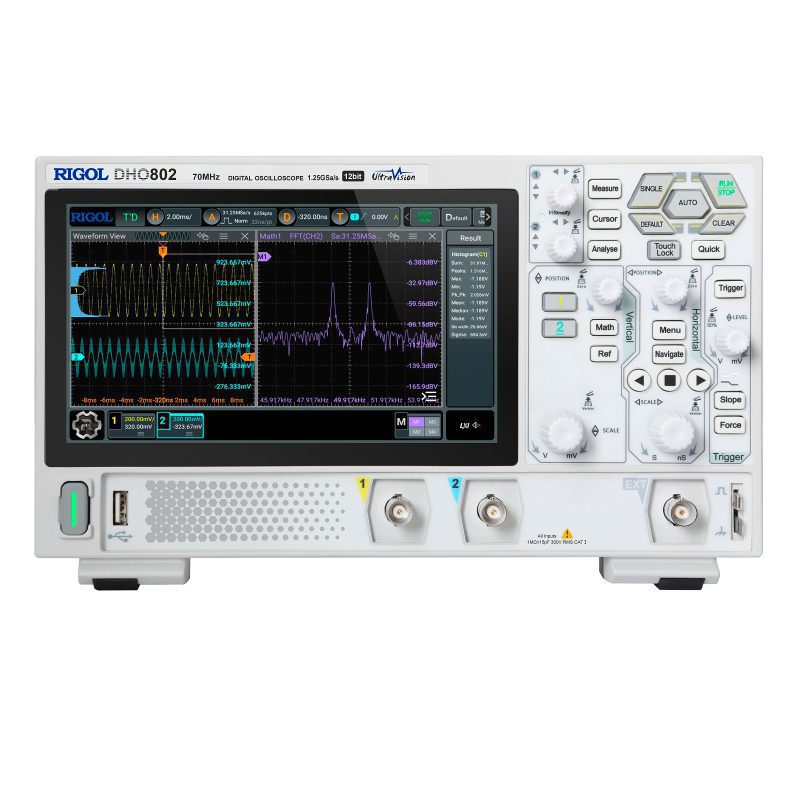 Осциллограф DHO802 — это совершенно новый 2-х канальный экономичный и компактный цифровой осциллограф высокого разрешения с полосой пропускания 70 МГц; частота дискретизации 1,25 Гвыб/с, скорость захвата до 1 000 000 осц/с (режим Ultra Acquire); максимальная память хранения до 25 млн. точек; разрешение по вертикали 12 бит; низкий уровень собственного шума.