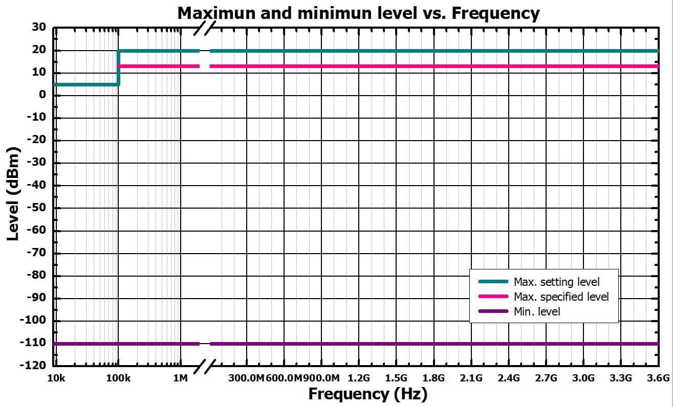 Максимальная выходная амплитуда составляет + 13 дБм (номинальное значение), и ее можно установить на +20 дБм, чтобы соответствовать тесту на нелинейность усилителя.