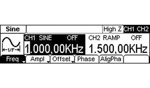 Двойной канал может выводить сигнал стандартной и любой формы, а параметры и состояние вывода двойного канала могут отображаться на экране одновременно.