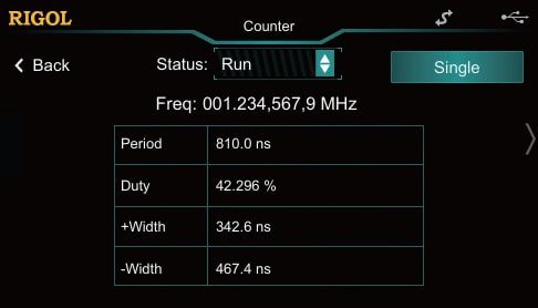 Он обеспечивает функцию измерения 7-битного частотомера, которая может измерять частоту, период, рабочий цикл, ширину положительного импульса, ширину отрицательного импульса и другие параметры внешнего входного сигнала, а также поддерживает статистику результатов измерений. Частотомер может работать одновременно с двухканальным выходом.