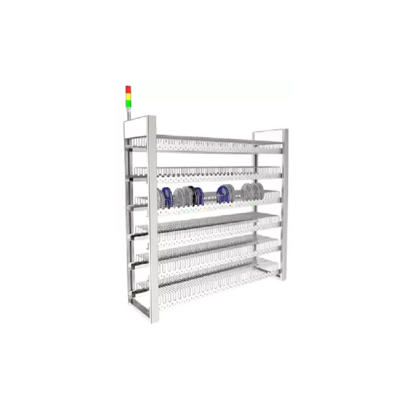 Интеллектуальная система хранения катушек SMD — это стойка, максимально эффективно использующая доступное на ней пространство для хранения SMD-компонентов. При загрузке катушки помещаются в промаркированные слоты, при этом через специально генерируемый 2D-код задается взаимосвязь артикул компонента/позиция слота на полке. За счет данного кода складской модуль ERP/MES системы предприятия может автоматически управлять световой индикацией, подсвечивая нужные позиции, упрощая и ускоряя процесс получения и выдачу комплектации.