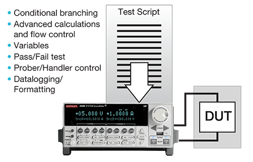 Технология использования сценариев тестирования (TSP®) позволяет встраивать и запускать сценарии тестирования на источнике-измерителе, обеспечивая лучшие в отрасли характеристики.