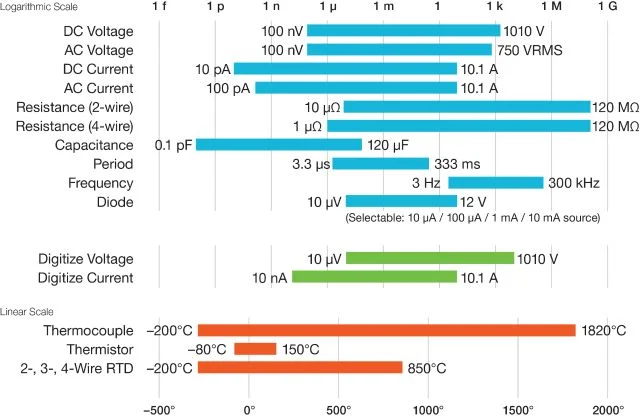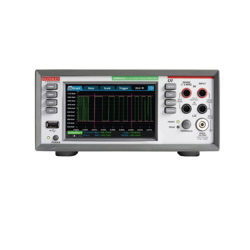 Предоставляется 15 встроенных функций измерения, включая возможности АЦП, измерения ёмкости и температуры. Возможность измерения низких сопротивлений и слабых токов маломощных устройств. Регистрация нестационарных сигналов при помощи встроенного АЦП. Одновременное отображение результатов двух измерений для более полного анализа данных тестирования. При работе с мультиметром DMM6500 не нужны дополнительные приборы.