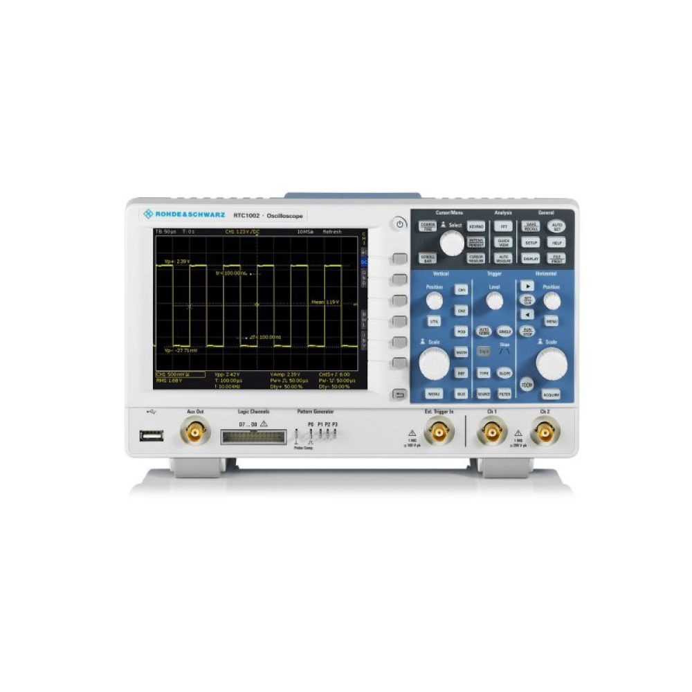 Покупая осциллографы RTC1000 Rohde & Schwarz, Вы получаете высококачественный многофункциональный прибор по демократичной цене: логический анализатор, генератор стандартных функций и тестовых последовательностей, элементарный тестер «годен/негоден», цифровой вольтметр и простейший тестер по маскам. В базовой модели полоса пропускания – 50 МГц. Дополнительно полосу пропускания можно увеличить до 70/100/200/300 МГц.