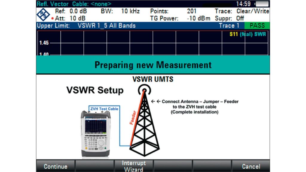 Используя функции мастера, пользователи могут предварительно настраивать схемы испытаний до выхода на местность. Для помощи техническому специалисту в полевых условиях можно вставлять изображения и инструкции по испытаниям. Это ускоряет процедуру измерений на месте и уменьшает количество ошибок измерений по причине ввода неправильных параметров или неверной схемы. Мастер упрощает сложные последовательности испытаний и устраняет проблемы с настройкой конфигурации для каждой схемы испытаний.