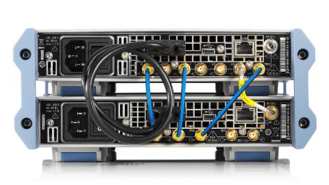 Соединенными генератором R&S SGS100A и преобразователем R&S SGU100A можно управлять как одним прибором. Комплект для расширения R&S SGU-Z4 обеспечивает необходимые электрические соединения и механическое крепление. В объединенных приборах имеются те же соединения, что на самом генераторе R&S SGS100A: один ВЧ-выход для всего диапазона частот и один аналоговый I/Q-вход для векторной модуляции.