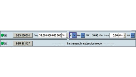В случае подключения через LAN или PCIe преобразователь R&S SGU100A полностью управляется через прибор R&S SGS100A. ПО для ПК R&S SGMA-GUI отображает преобразователь R&S SGU100A как расширение генератора R&S SGS100A и задает максимальный настраиваемый диапазон частот. Укомплектованный преобразователем R&S SGU100A генератор R&S SGS100A работает во всем диапазоне частот от 10 МГц до 40 ГГц без модуляции и от 80 МГц до 40 ГГц с векторной модуляцией.