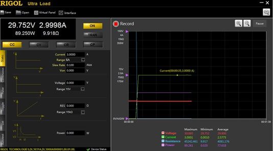 Легко перенастраивайте или изучайте настройку DL3000 удаленно, через USB или Ethernet, с помощью бесплатного программного обеспечения UltraLoad. Записывайте захваченные данные и сохраняйте результаты длительных измерений, чтобы охарактеризовать и лучше понять производительность Вашего источника питания.