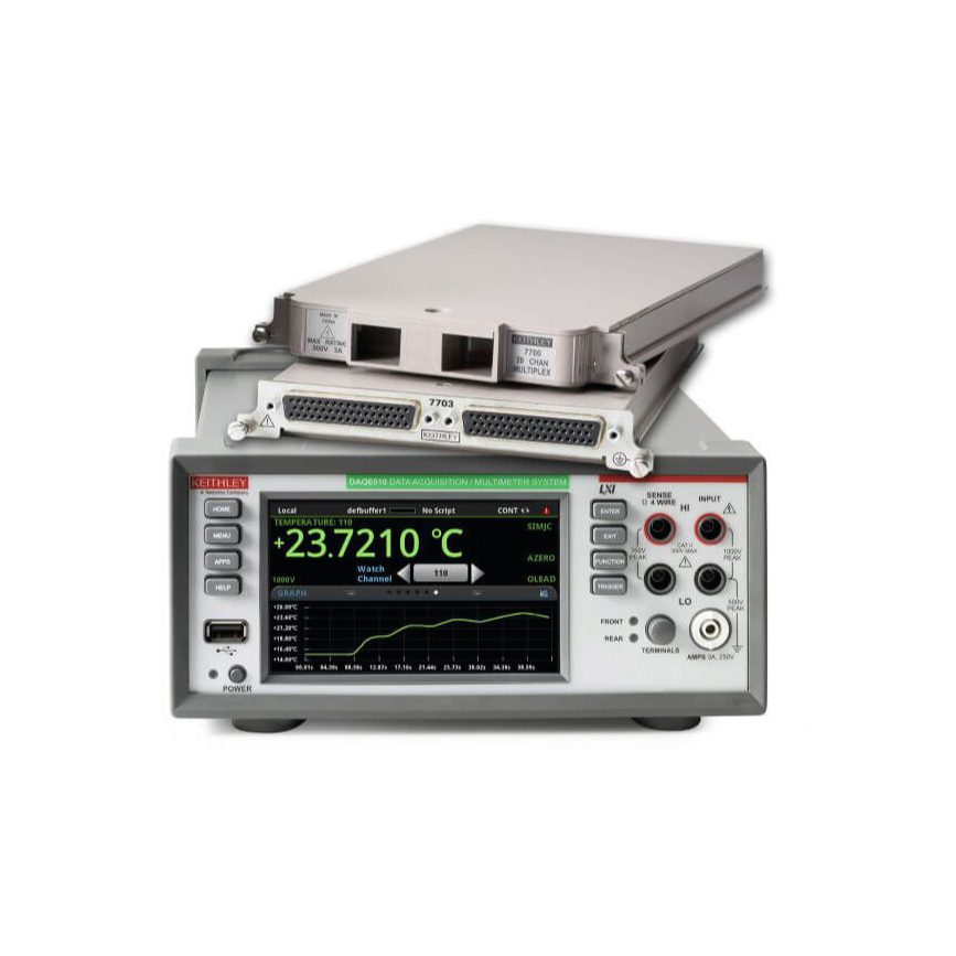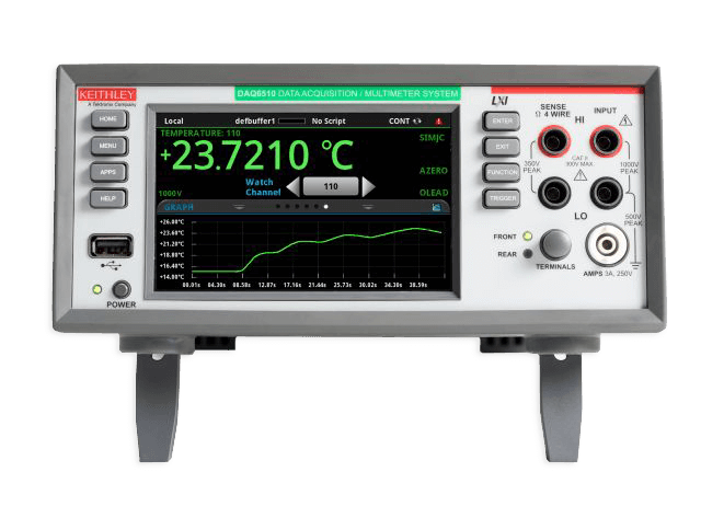Система DAQ6510 — многофункциональная измерительная предназначенная для измерений и оцифровки электрических параметров испытуемых устройств, контроля температурных режимов технологических процессов, управления работой производственного оборудования, а так же для непрерывного мониторинга со сбором и регистрацией данных.