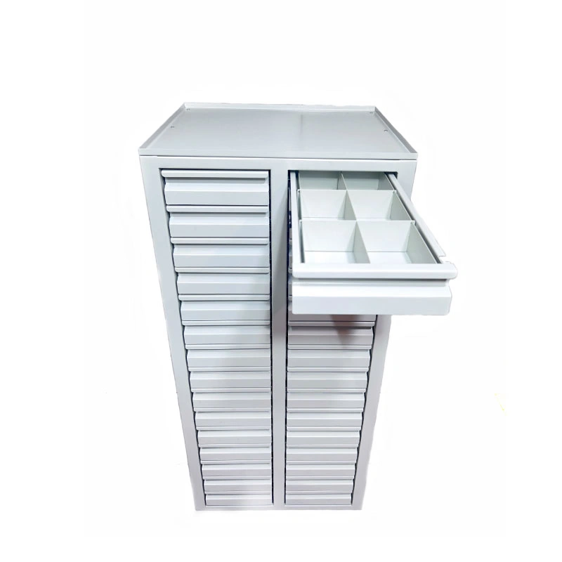 Металлическая тумба-кассетница предназначена для хранения мелких комплектующих. Оснащена 30 выдвижными ящиками на телескопических направляющих, имеет сварной корпус и ящики.