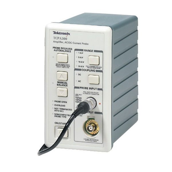 TCPA300 — это усилитель для токовых пробников Tektronix ( AC / DC). Подключаются напрямую с интерфейсом пробников TekProbe Level II, TekConnect ( с переходом TCA-BNC) или TekVPI ( с переходом TPA-BNC).