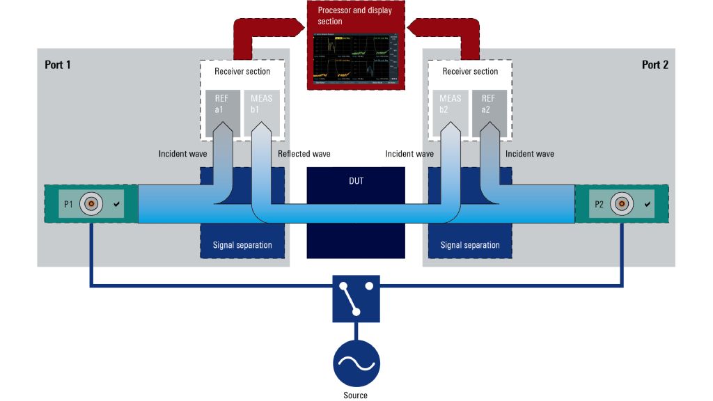 Архитектура с четырьмя приемниками содержит специализированные эталонные приемники и измерительные приемники на портах 1 и 2. Благодаря этому анализатор R&S ZNH поддерживает дополнительные типы калибровки, такие как калибровка UOSM (неизвестная перемычка, ХХ, КЗ и согласованная нагрузка). Данный вид калибровки полезен для ИУ с разными типами входных или выходных разъемов.