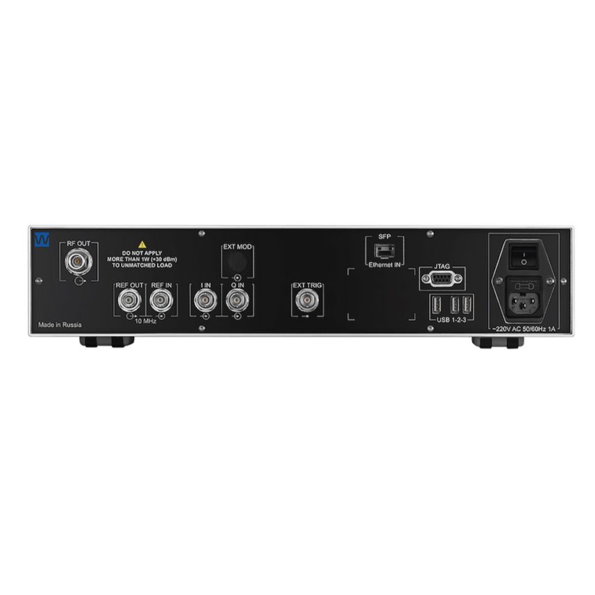 - Интерфейс 10 Гбит/с позволяет в реальном времени непрерывно загружать пользовательские данные в прибор и использовать генератор в качестве передатчика