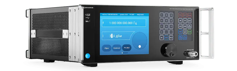 - Генерация сигналов от внешнего аналогового IQ источника с шириной полосы до 1.8 ГГц