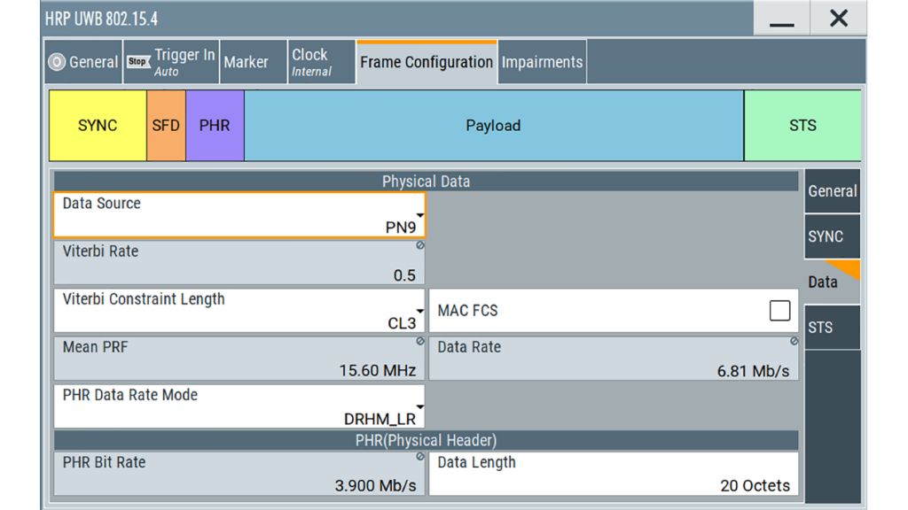 R&S SMM-K149 — опция формирования модулирующих сигналов в режиме HRP UWB — поддерживает генерацию сигналов для трех указанных режимов: HRP UWB из IEEE 802.15.4a-2015, а также режим BPRF и режим HPRF для устройств расширенного диапазона (ERDEF) из IEEE 802.15.4z